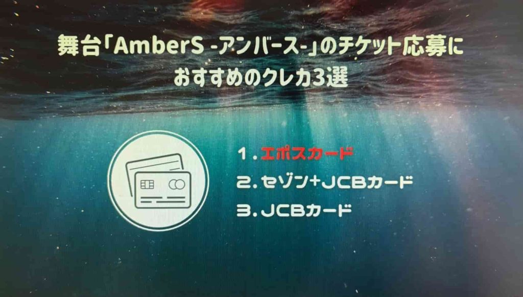 舞台「AmberS -アンバース-」のチケット応募におすすめのクレカ3選