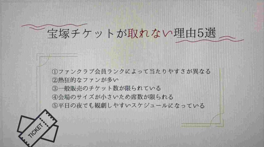 宝塚歌劇のチケットが取れない理由は5つあります。